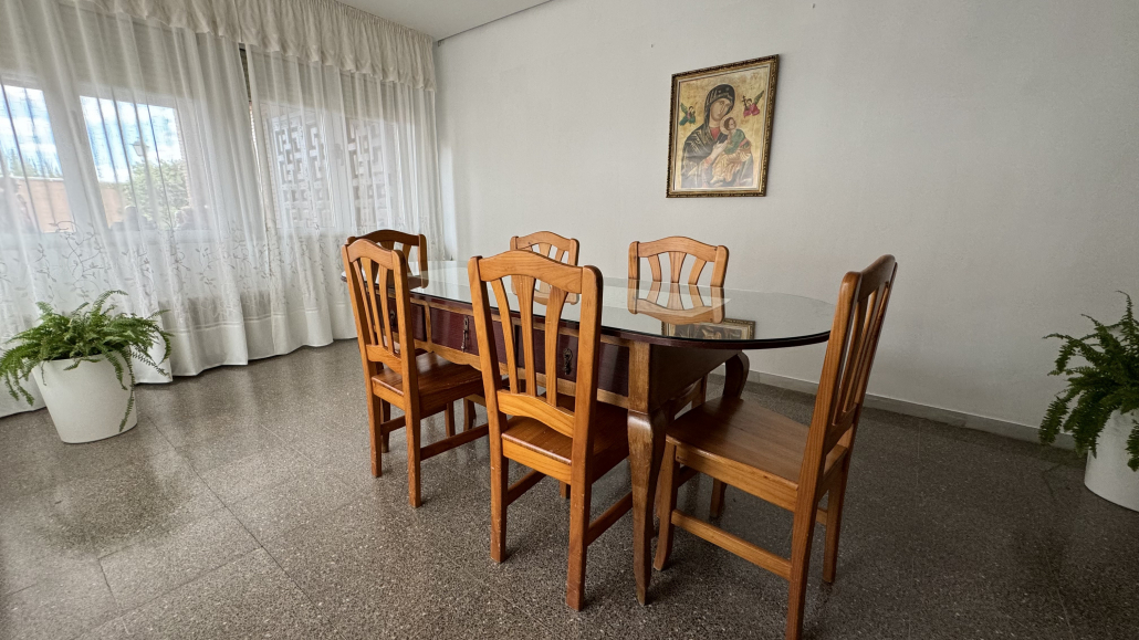 – Planta principal: salas de visitas, sala de reuniones, capilla, despachos –secretarian y trabajadora social-, sala de terapia ocupacional, huerto, cocina-comedor, salón de actos.